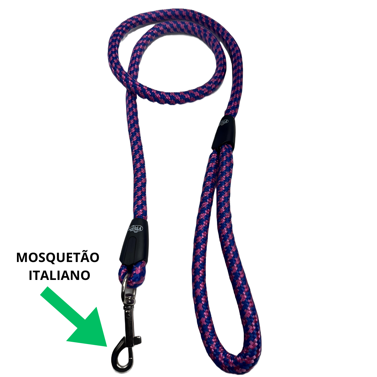 Mosquetão Italiano com Giro 360°: evita torções e garante total liberdade ao seu cão.